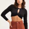 Features: Cut Out Detail, Ribbed Material, Long Sleeves, Cropped Length