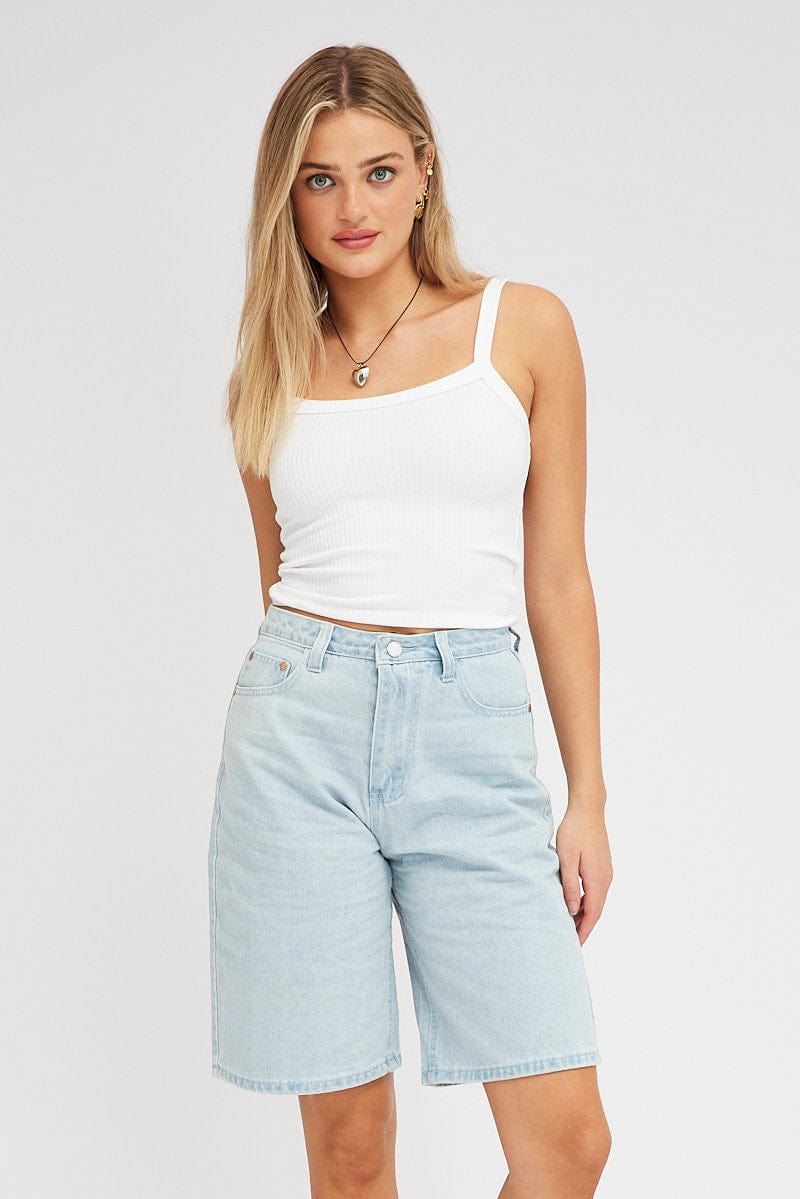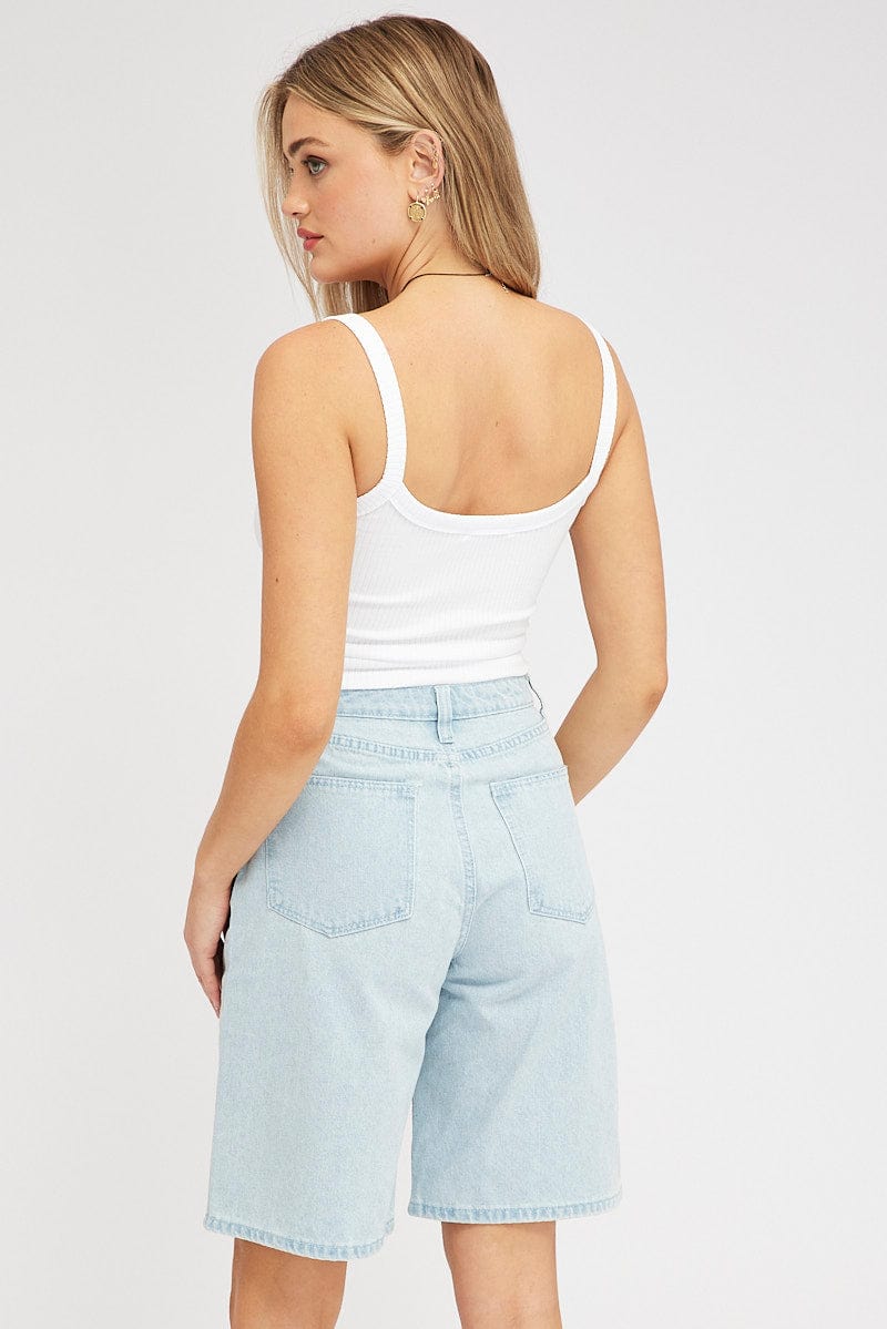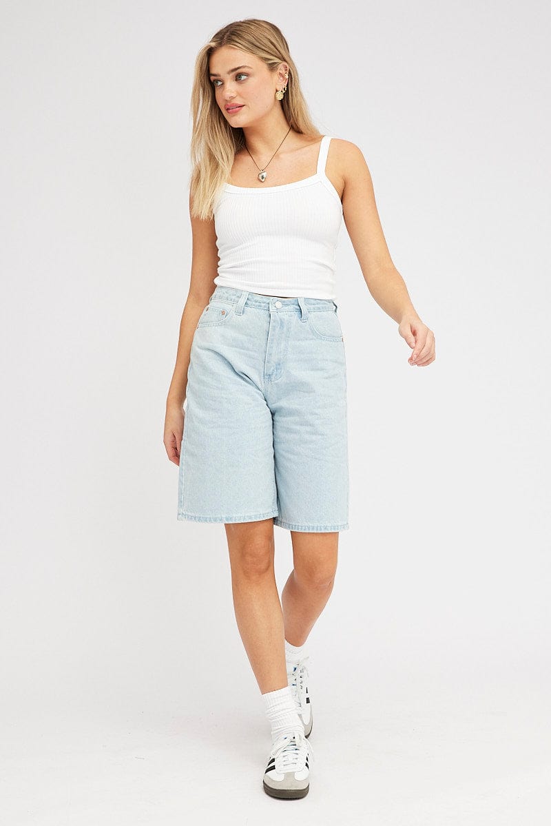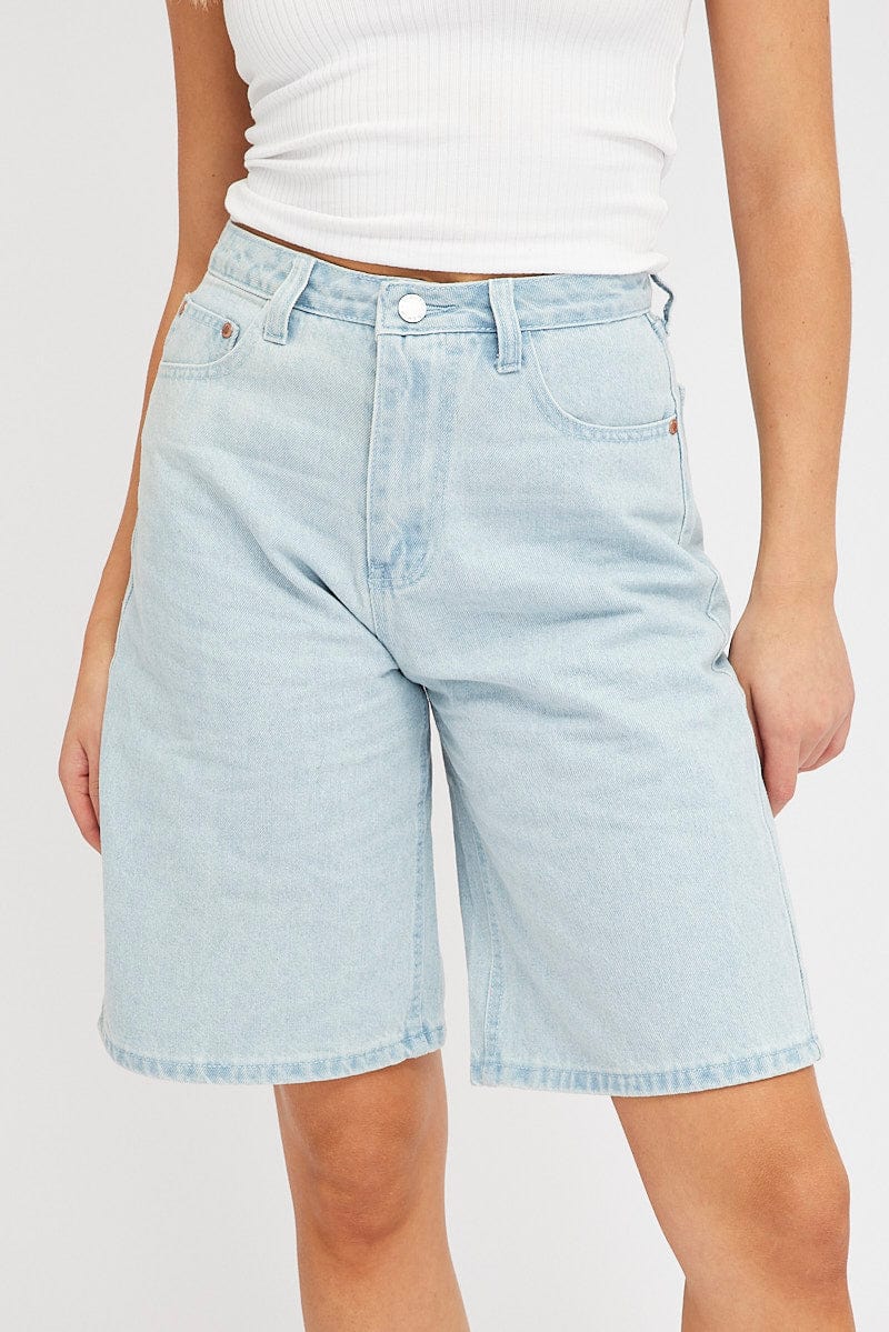 Blue Denim Knee Length Denim Shorts Relaxed quantity