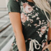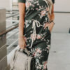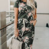 ?Washed charcoal base with floral print, side pockets and slits