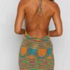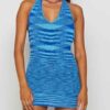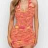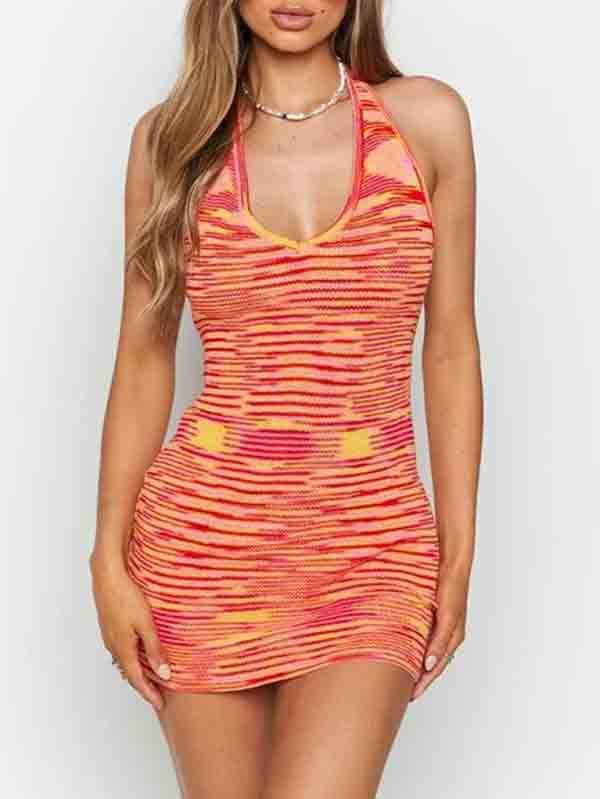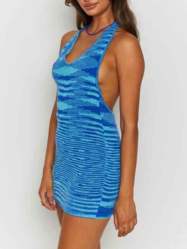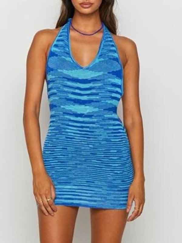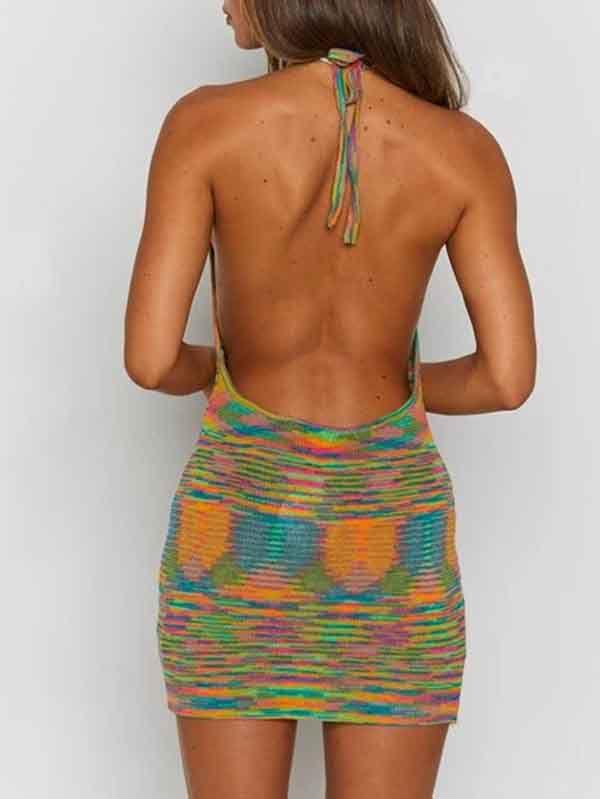 - Sexy knitted dress with v neck halter design, open back, above knee length