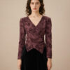 This tee features a beautiful floral print on a rich purple background, adding a pop of color and sophistication to any outfit. The wrap design, complete with ruched detailing, creates a flattering fit that accentuates the waist and offers a feminine silhouette.?