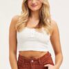 Features: Button Front, Ribbed Knit, Tank, Cropped