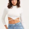 Features: Strap Detail, High Neckline, Cropped, Slim Fit