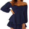 - Women off shoulder chiffon jumpsuit, boho long sleeve shorts romper