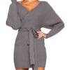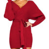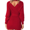 Women’s Sexy Cocktail Dress V Neck Long Sleeve Wrap Knit Sweater Mini Dress