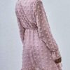 - Women Summer Short Sleeve V Neck Swiss Dot Dress