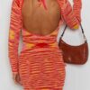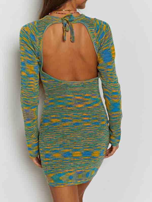- This y2k knitted dress features long sleeves, tie-back design, backless, above knee length. Sexy backless dress for women