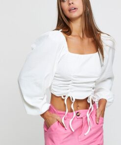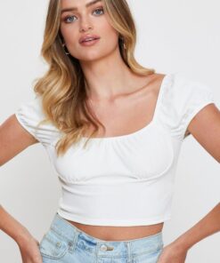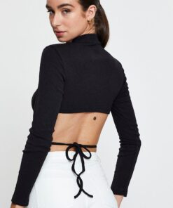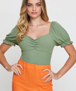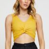 Features: Twist Front, Ribbed Material, Cropped Length, V Neckline