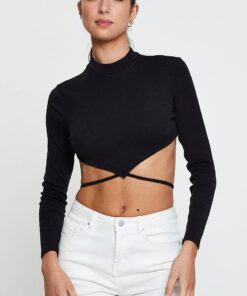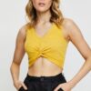 Features: Twist Front, Ribbed Material, Cropped Length, V Neckline